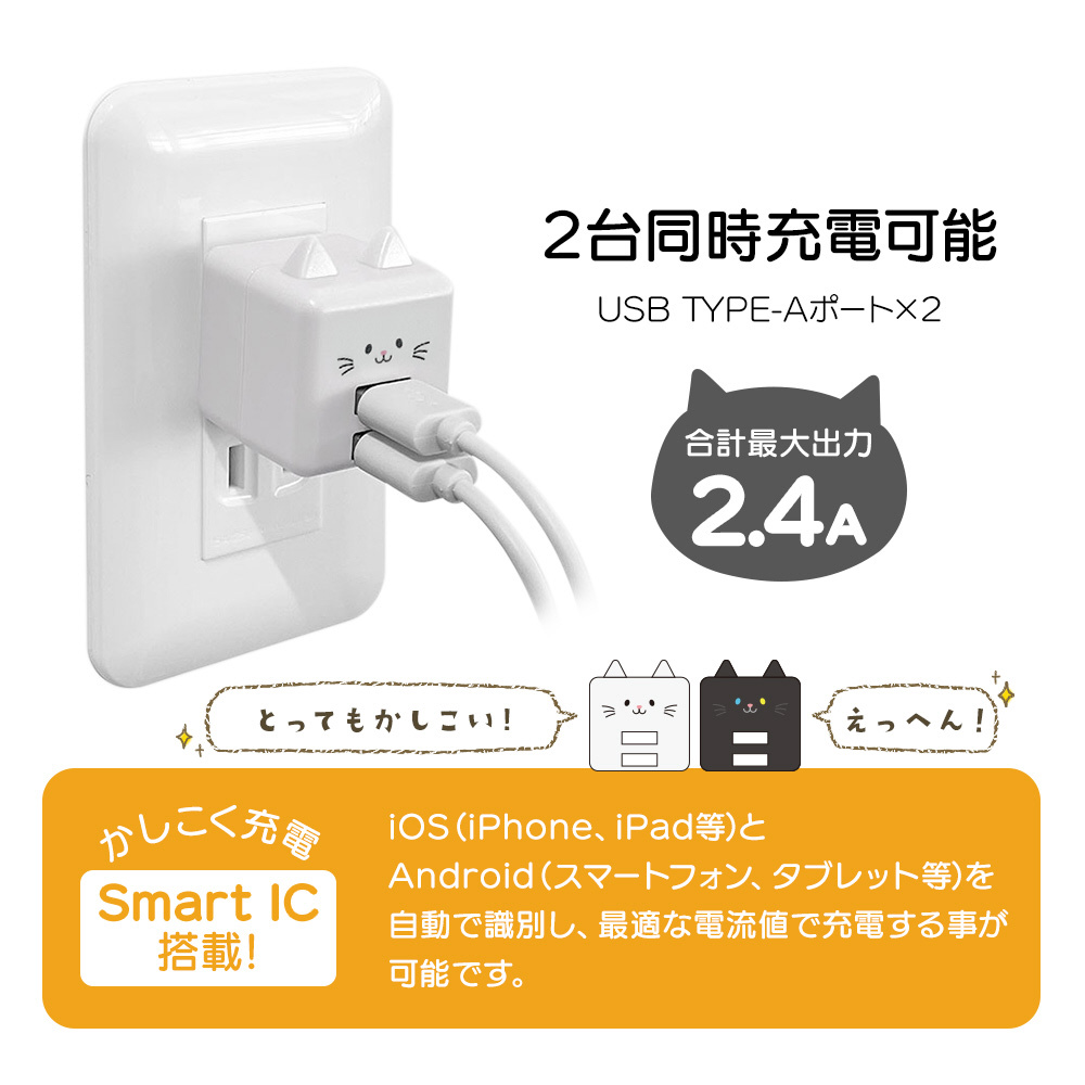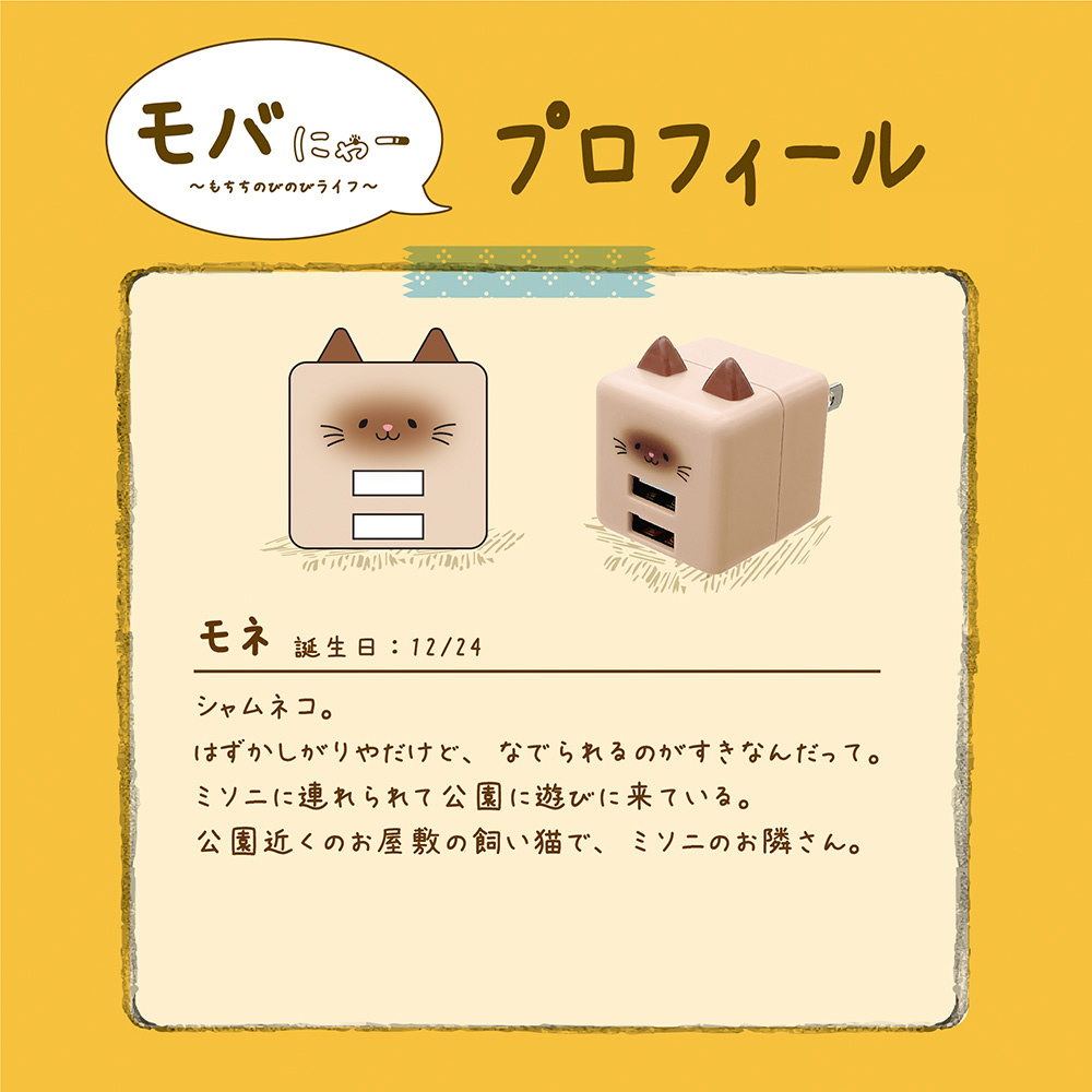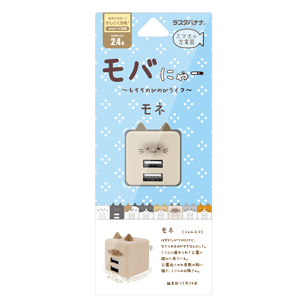 モバにゃー AC充電器 USB A×2ポート 2.4A モネ RAC2A2A02MNE