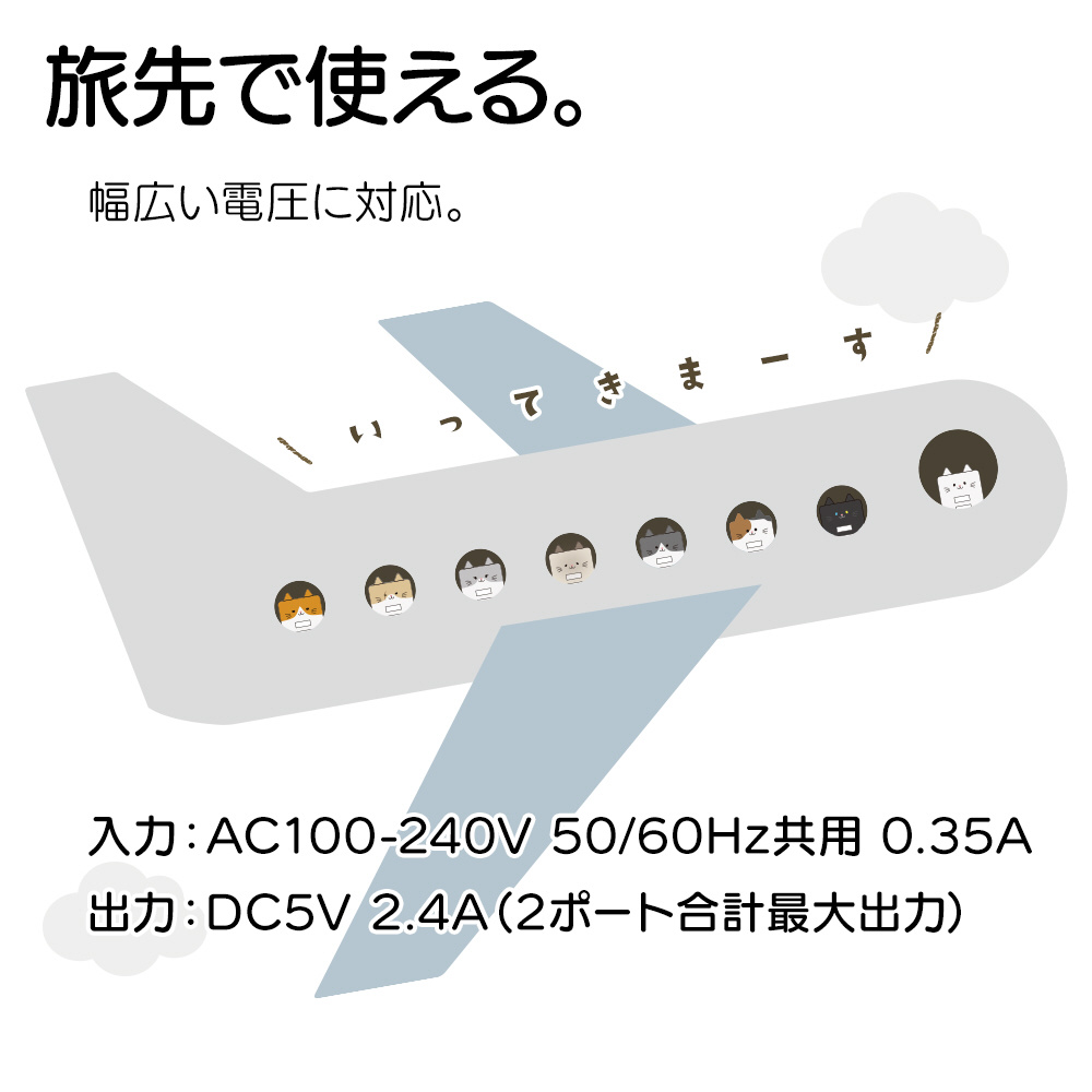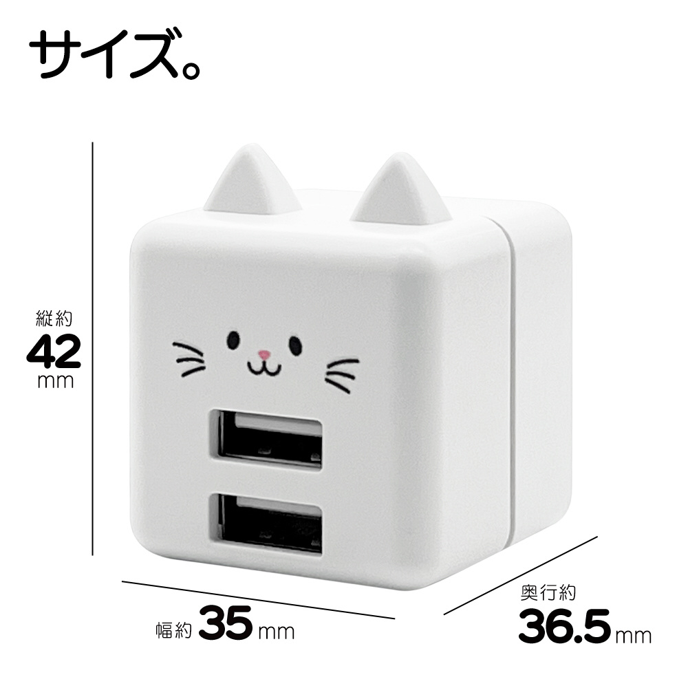 モバにゃー AC充電器 USB A×2ポート 2.4A カシラ RAC2A2A02KSR