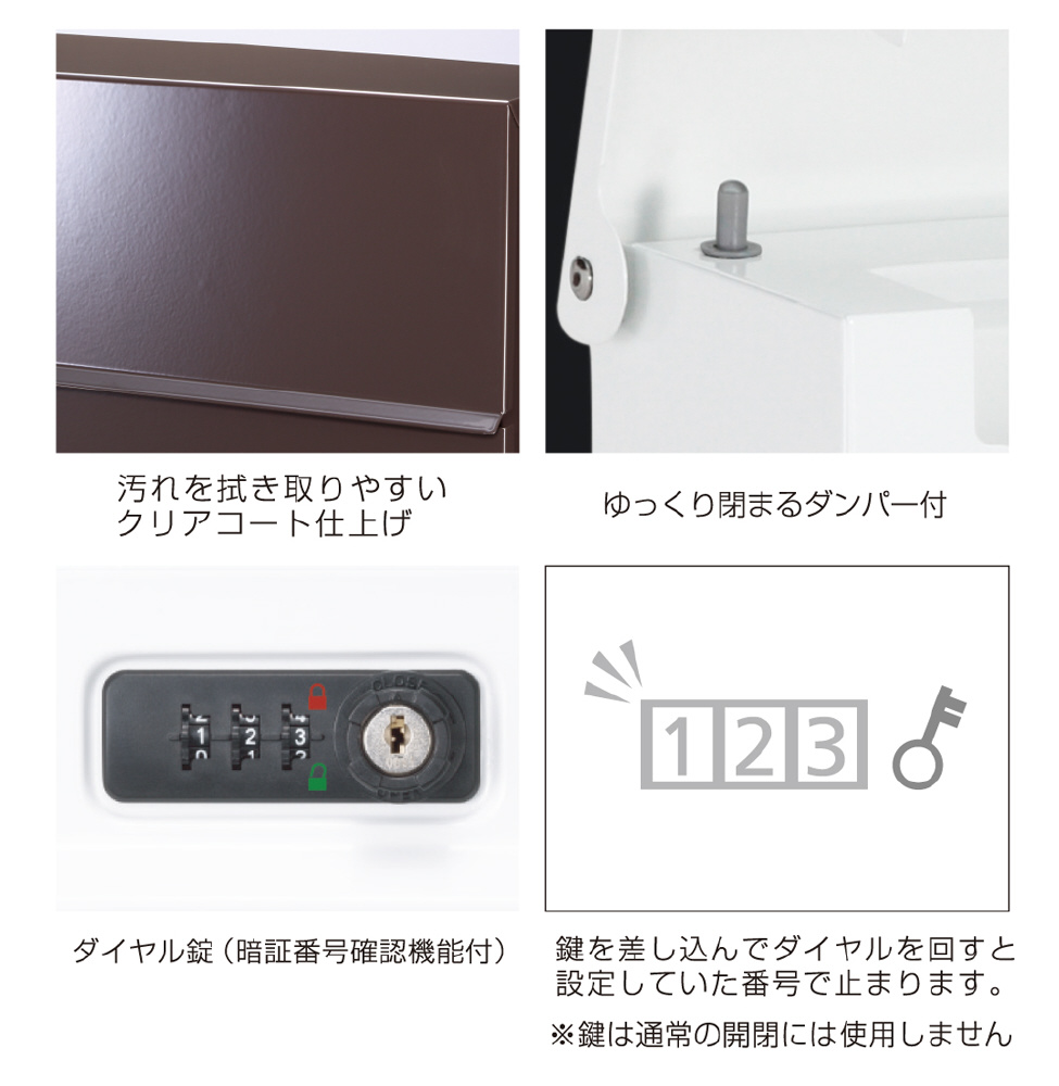 ■ゆっくり閉まるダンパーや暗証番号確認機能付きダイヤル錠などを用い、使いやすさにも配慮しました。