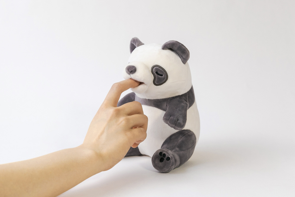 赤ちゃんや幼いペットの短い期間にしか体験できない幸せなしぐさを再現した甘噛みロボットです。