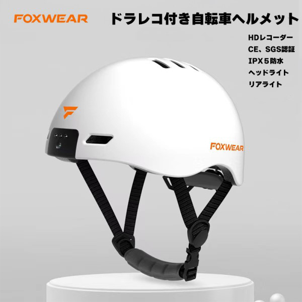 ドラレコ付き 自転車用ヘルメット(頭囲約54〜61cm/マットホワイト)V6-WH