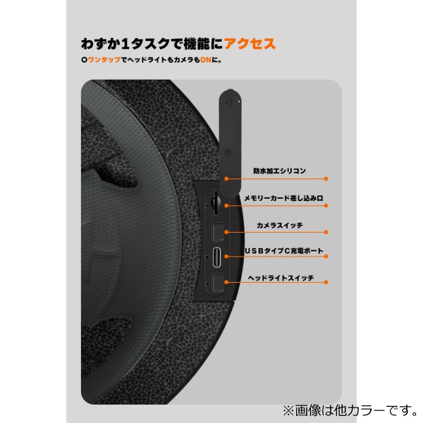 高解像度(1980×1080)のカメラを搭載したドラレコ付き自転車ヘルメット。ヘッドライト付き・後部に警告テールライト搭載で、安全性も抜群!安全な夜間走行を実現。大きな通気口で通気性バツグンです。防水加工。頭囲は調整可能。