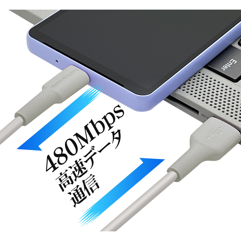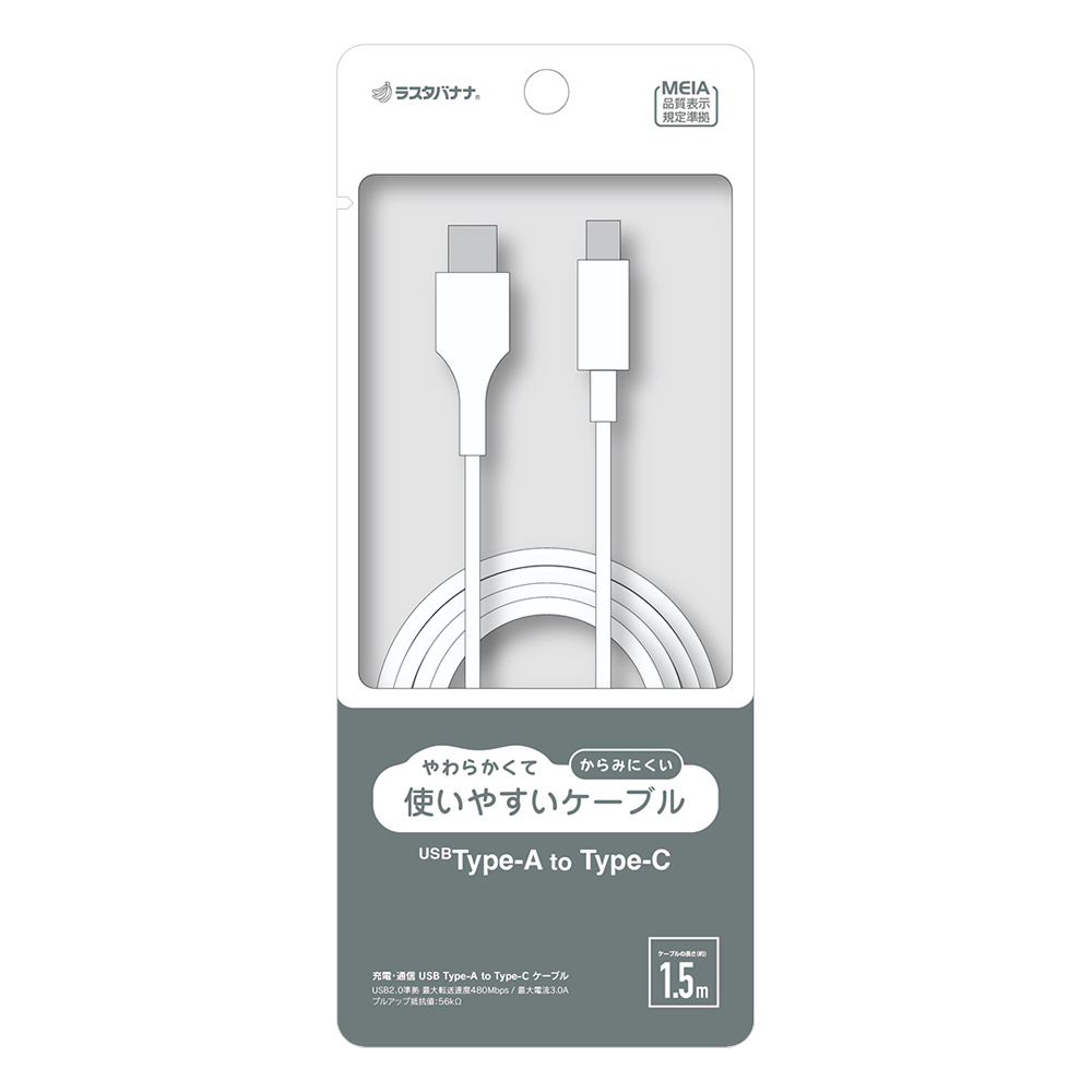 USB-A to Type-C ケーブル やわらか 1.5m ホワイト R15CAAC3A02WH