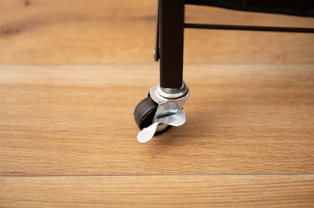 ■ストッパー付きのキャスター/脚先には、ストッパー機能付きのキャスターを使用しています。ベッドサイドや洗面所などの動かしたくない場所で使用する際は、ストッパーを使えば簡単に固定することができます。ストッパーを外せば、お好みの場所へ移動もラクラクです。