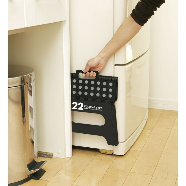 持ち手を引き上げるだけで、簡単にコンパクトにたためるので隙間に収納できます。