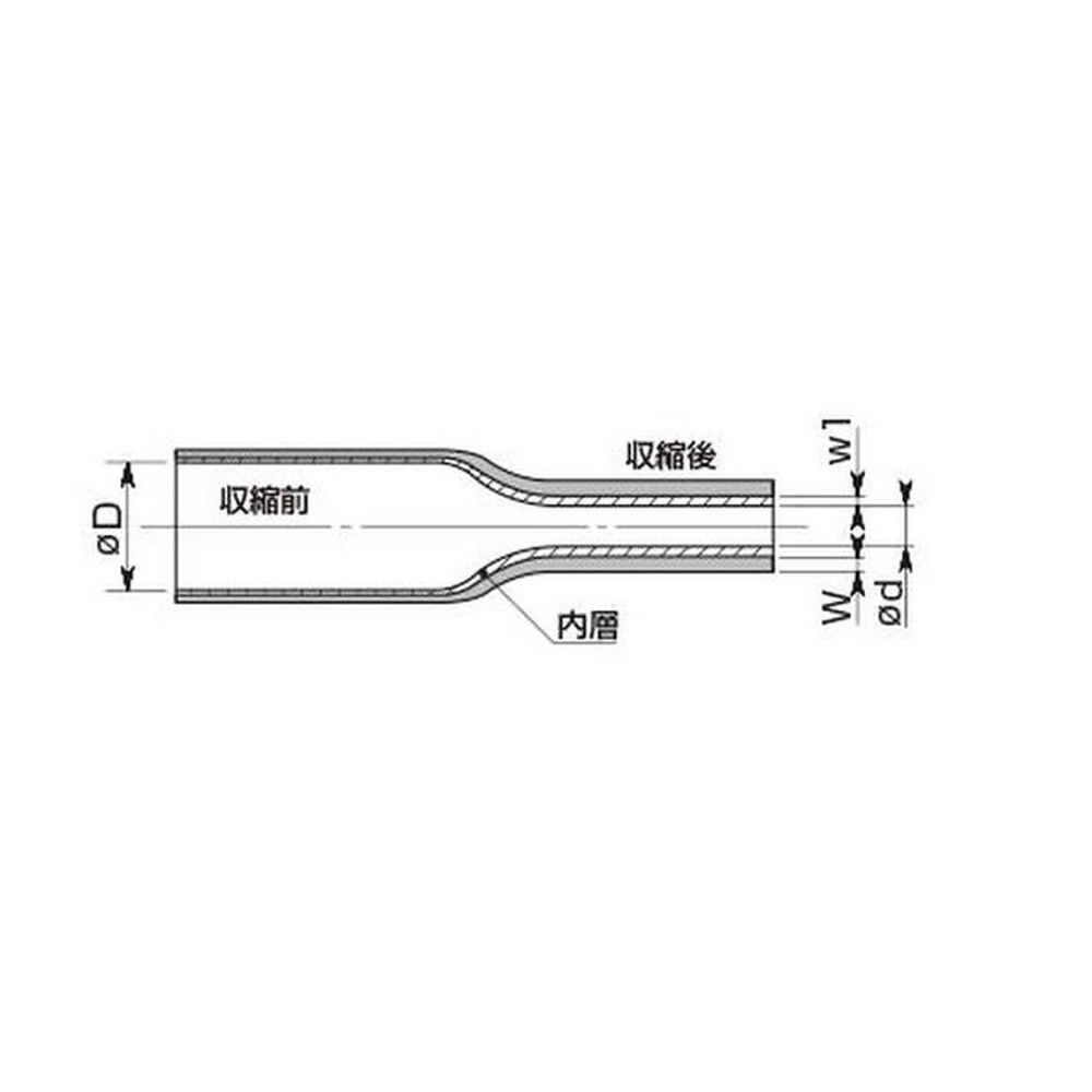 ●接着剤厚み(収縮後各目値W1)(mm): 0.8●材質: 架橋ポリオレフィン (接着剤付き)