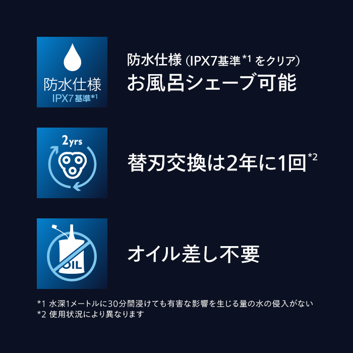 ・ヒゲ密度感知システム:毎秒250回、ヒゲの密度を感知。ヒゲの濃さに合わせて自動でパワーを調節