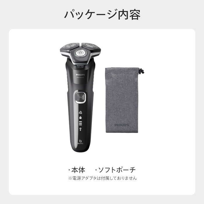 付属品 シェーバー本体、シェービングユニット、取扱説明書、グローバル保証書、延長保証リーフレット、充電ケーブル、クリーニングブラシ、ソフトポーチ、保護キャップ、※充電アダプターは同梱されません。