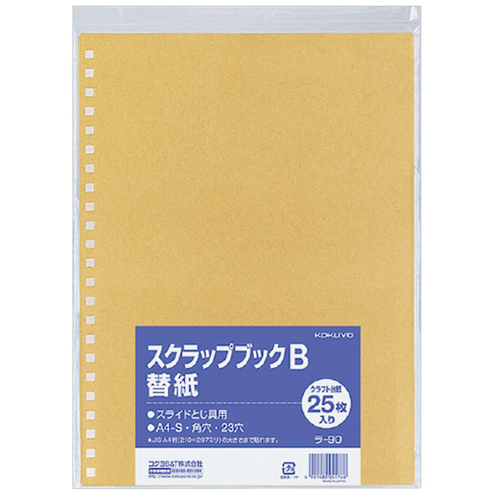 コクヨ スクラップブックB替紙 A4 クラフト 台紙25枚 23穴 ラ−90 51704452
