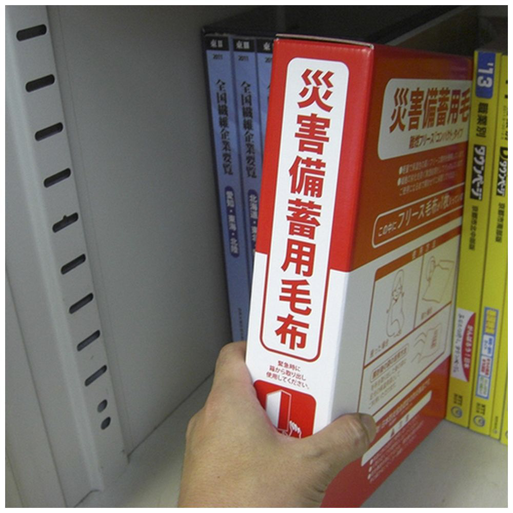 身近な場所に保管が出来るA4ファイルサイズの難燃フリース毛布です。