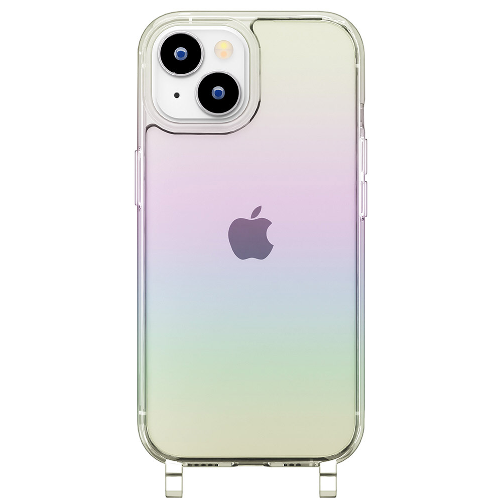 持ち運びに便利なショルダーストラップやハンドストラップを取り付けられるiPhone 15 Plus用 ショルダーストラップホール付クリアハイブリッドケースです。