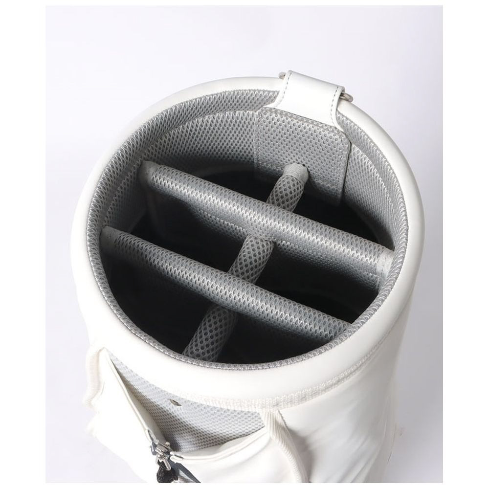 通常、本体と別々のフードをキャディバッグ本体に縫い付けることで、すっきりスマートに収まるよう工夫しました。