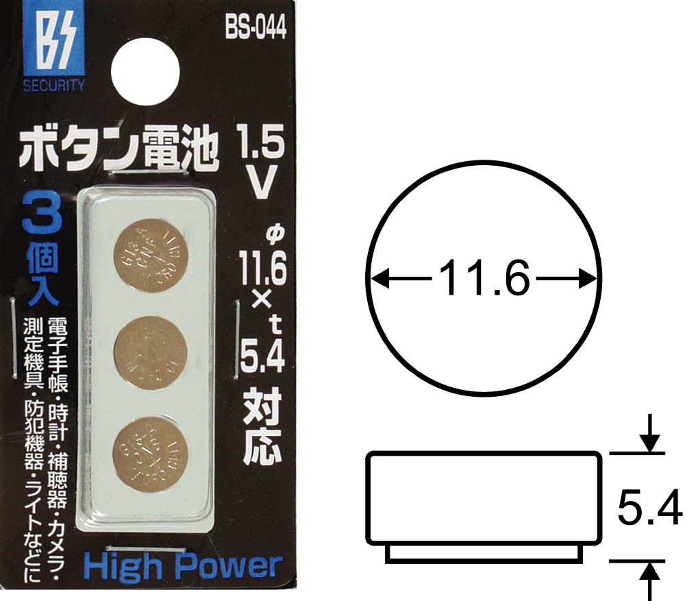 アラーム、ライト、時計等の電池に使えるボタン電池。