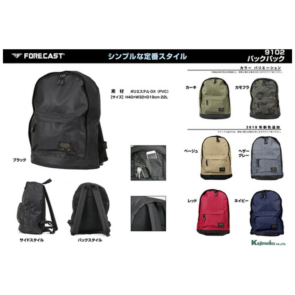 カジメイク 9102 バックパック ブラック 22L
