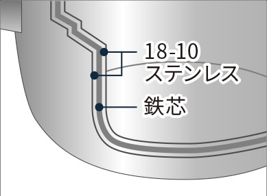 材質: 本体=18-10ステンレス・鉄芯・18-10ステンレス(全面鉄芯三層鋼)