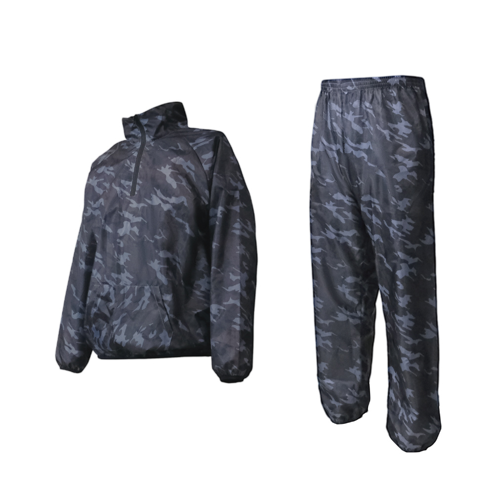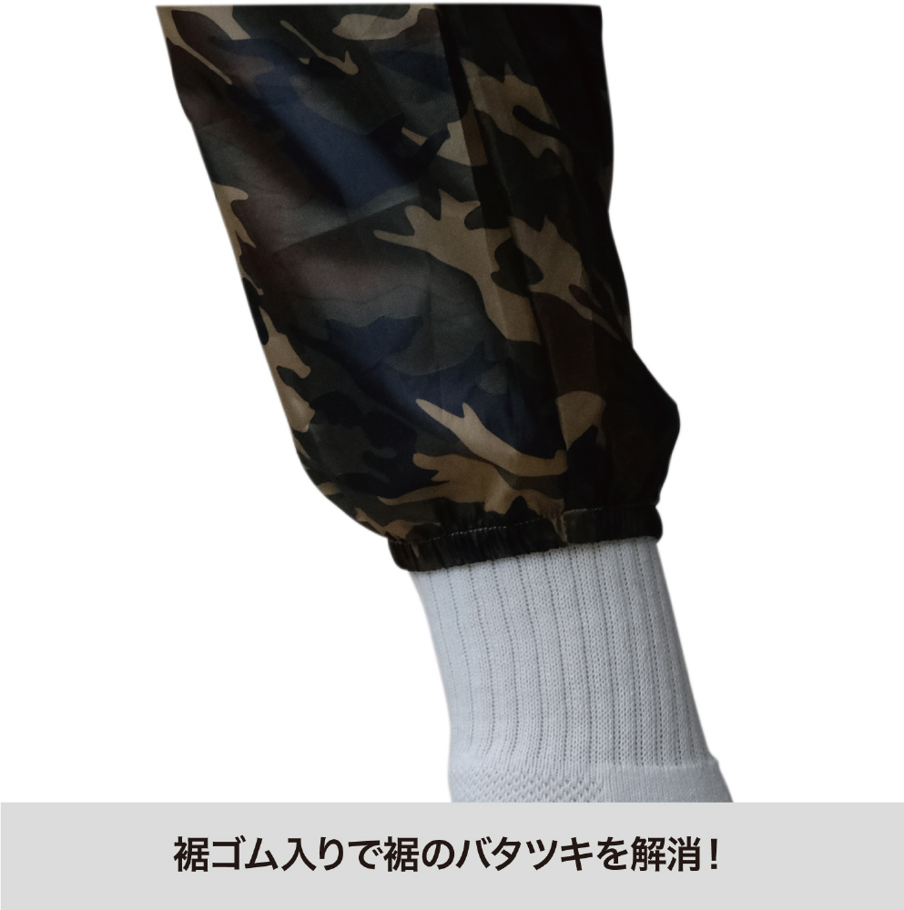 撥水コーティング加工を施した迷彩柄の上下組立ち襟ヤッケです。