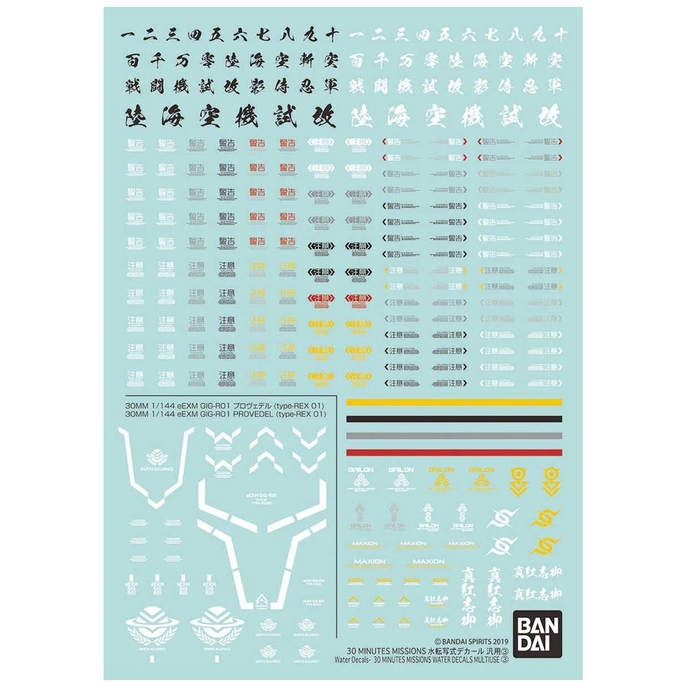 ■大型EXAMACS「30MM 1/144 eEXM GIG-R01 プロヴェデル(type-REX 01)」(別売)に対応したマーキングを収録。