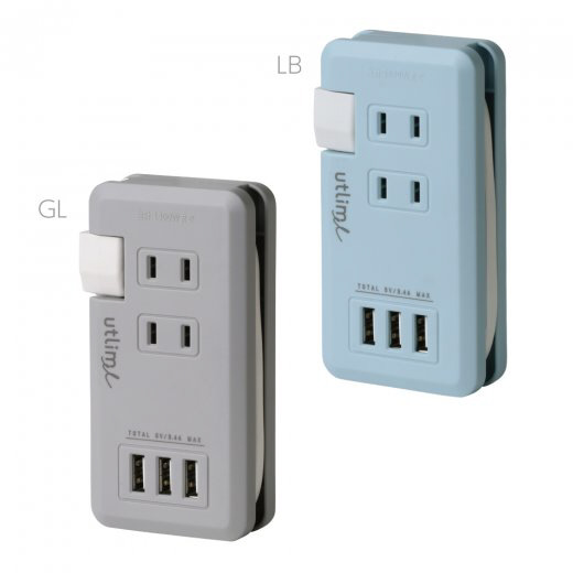 [ユートリムエル ポータブルコンセント USBポート付 ライトブルー]